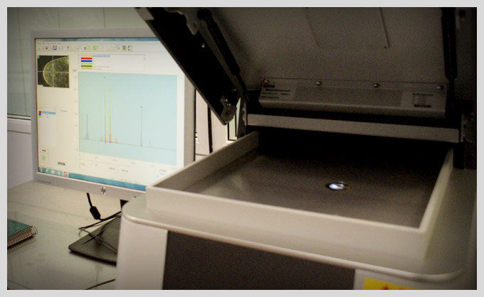 El laboratorio del L’ORFEBRE, S.A. dispone de 2 métodos para analizar el oro: la copelación y el análisis por espectómetro de fluorescencia X (CRF: X-Ray Flourescence).